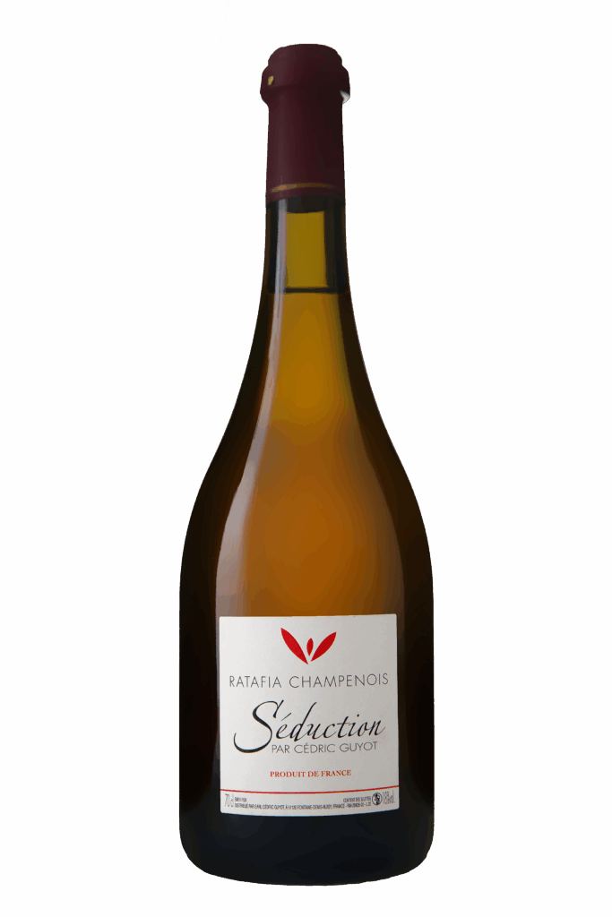 Champagne d’assemblage Pinot Noir et Chardonnay et rouge de Champagne.